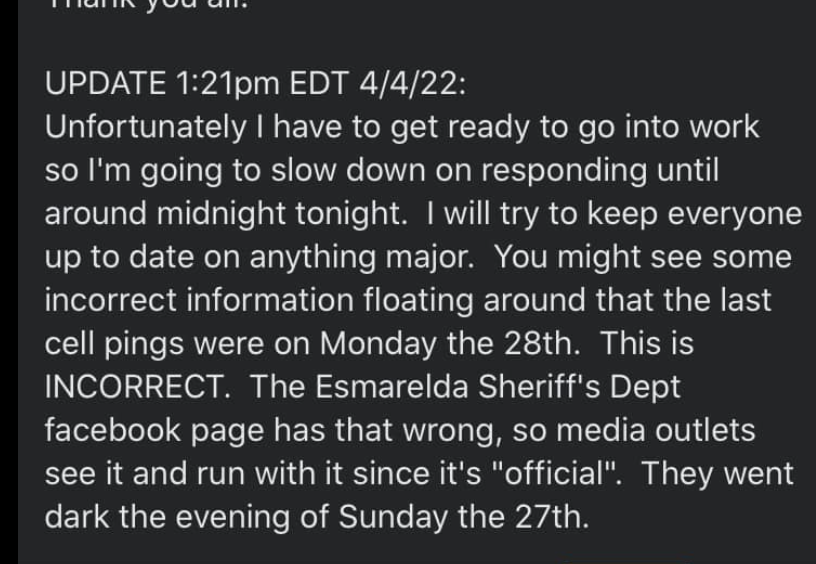 Whether there was a ping the next morning, also around Coaldale, as originally stated by Sheriff...?