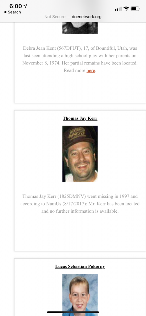 Thomas’ NamUs was modified today. There are only 2 VA exclusions.