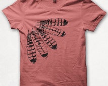 Just a SWAG, but those look like turkey feathers to me. Wild turkey whiskey t-shirt?