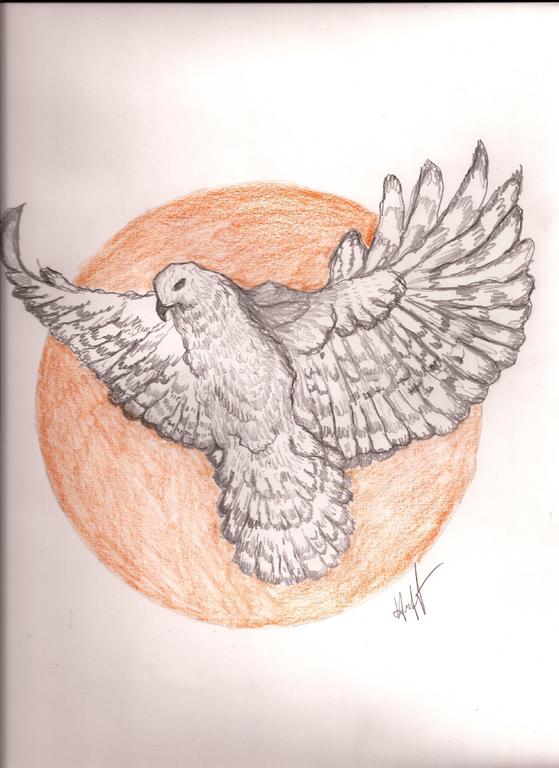 Excellent drawing, Skully! Very talented!! Yay!! Thank you!!This is one possibility of the rending we are seeing. I used the tail from the picture we were given on the t shirt and then added the rest as it may have been drawn. The circle is off under the left wing area but in order to get it round I did it the way it should be. So perhaps when they get the sample back and pin it out, it will look more like a circle. I am rusty at doing these types of drawings, so bear with me.
