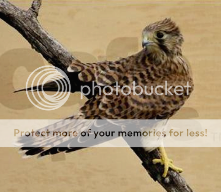 If you look at the images of it flying, the tail doesn't look anything like our bird, IMO.Yes, the kestrel is smaller looking, but has similar markings: