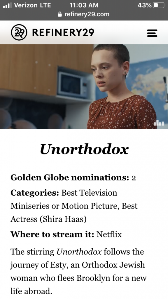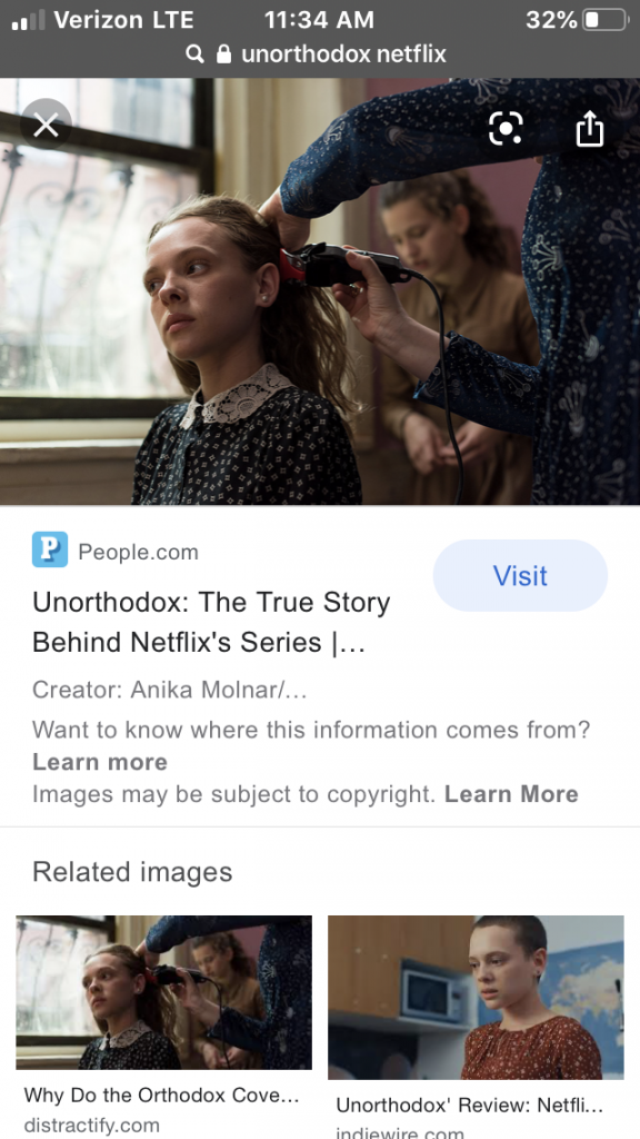 Speaking of head shaving. I actually care across the ad for the Netflix movie Unorthodox (about a woman running away) and wondered could this woman been a Hasidic Jewish woman that left the religion and husband?