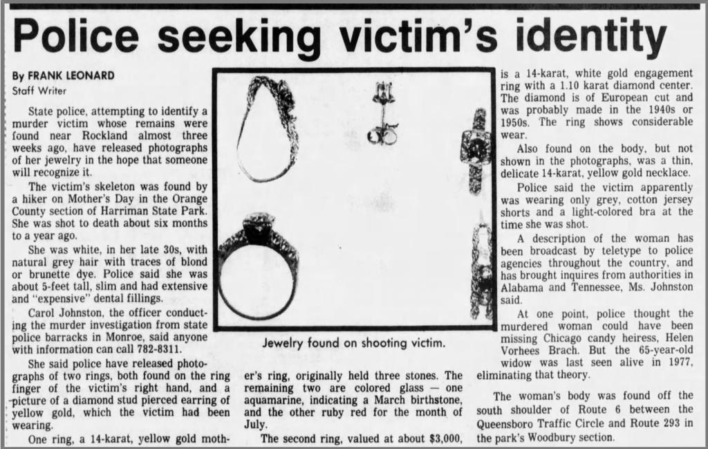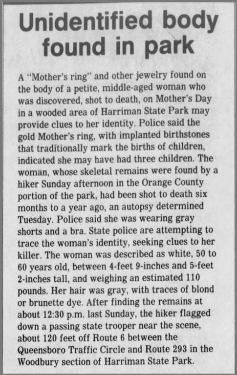 -Also, parts of clothing associated with "warm weather wear" were located on the remains - so I guess indicating that it may have been a cold time of year when this woman died. However, another article contradicts this and most others don't mention it.