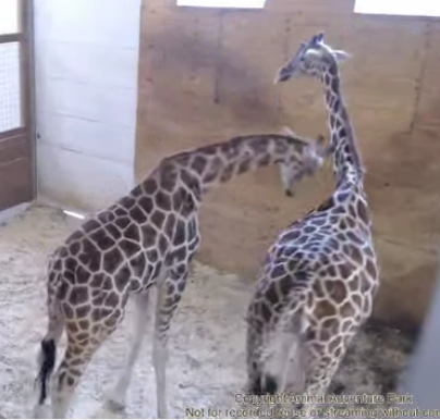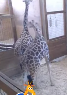 I had never seen him try to get underneath her belly and prod her with his ossicones, aww heck call them what he used them for HORNS, into her belly like that. Poor girl. She seems no worse for the wear though. Such a strong girl!