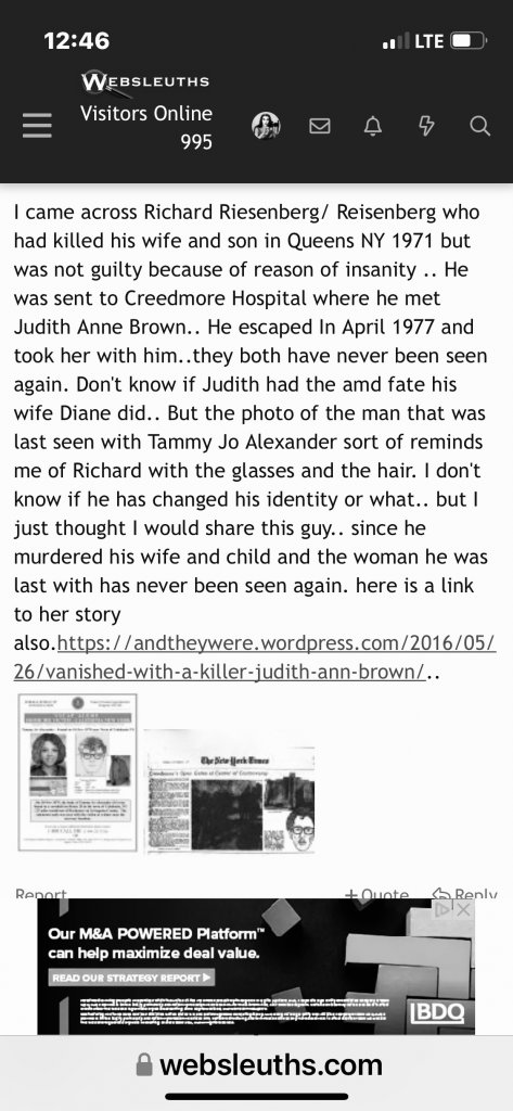 I posted this a while ago on Tammy Alexander’s thread. So Iam cross posting it here. The last man that Tammy Alexander was seen with has a resemblance to Richard. Now listening to the podcast and knowing that he was suspected of others makes me wonder even more.
