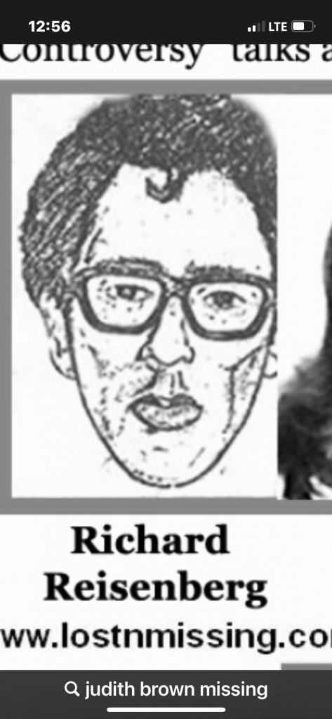 In 1977, 19 year-old Judith Anne Brown, who went by Judy was trying to improve her mental health situation. college student, and lifelong New York resident, Judy stayed behind when most of her family moved out of state to Kansas. It was after her family moved away, that Judy, who had suffered with OCD and depression, began to struggle with her mental health. Wanting to get help, she voluntarily checked herself into Creedmoor Hospital hoping to improve her situation. It was there that Judy crossed paths with another patient named Richard Riesenberg and began dating him. He was committed for the brutal 1971 murders of his wife and young son. Despite the murders he committed, he was able to come and go from the facility. Judy was transferred to another hospital and eventually discharged. In April,1977, Richard Riesenberg found out he was going to be transferred to another facility where he would no longer be free to come and go. Before that could happen, he walked away from Creedmoor hospital, and vanished. It was soon discovered that Judy was missing too. Although Judy spoke to family shortly after she went missing, she was never seen again. The focus by authorities seemed to be on taking Richard back into custody. Despite the fact that Judy was very likely with him, her name wasn't mentioned in news articles about his escape. Years after they vanished, Richard Riesenberg was reported to have called his attorney to talk about turning himself into the authorities, but he never did, and was never heard from again. At the time of that phone call, he claimed he was in California, but did not mention Judy.