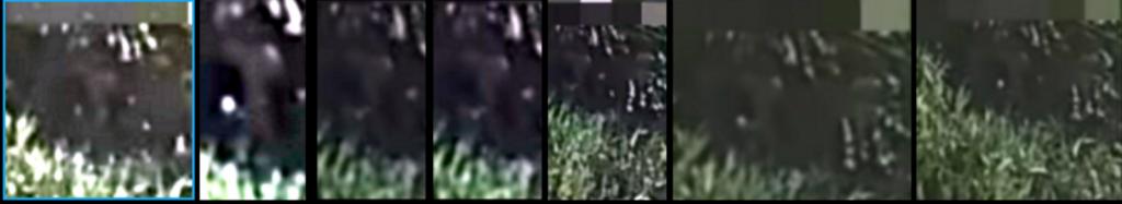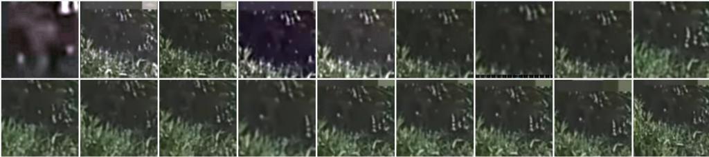 In this top row of pictures I see two figures, one looks like it is wearing a helmet and one has a hood (maybe over a balaclava?). Anyone else? I couldn't make either of these out in the video, only in your post.