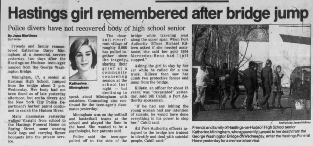 Not much more out there on her case, they believe she jumped off the George Washington Bridge.