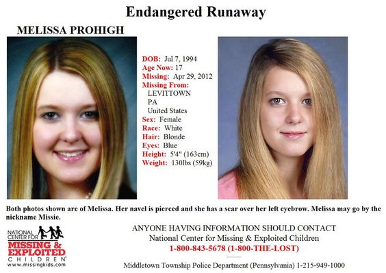 Circumstances: Elisa was last seen on February 8, 2013. She may have traveled out of state. Elisa's ears, nose, and lip are pierced. Her hair may be dyed another color