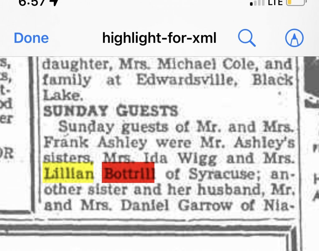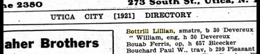 I also found a Mrs. Lillian Bottrill and two sons listed in a William E. Bottrills Obituary in Syracuse NY. I also found a Lillian Bottrill (whose brother is a Mr. Ashley) listed in the newspaper in Syracuse NY.