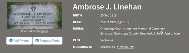 5. It would have been nice to reach out to the police officer handling her case, Ambrose Linehan, but he died in 1989. (See: Picture 6)