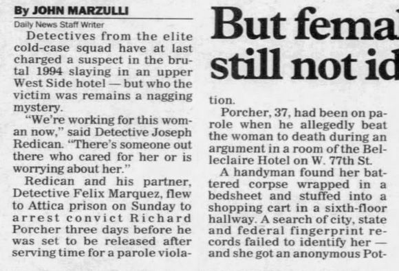 Circumstances of RecoveryUnknown black female was found in a shopping cart in the 6th floor hallway of a hotel at the above address. She had apparently been involved in a physical altercation with a man in the hotel during the previous evening. The Hotel was known to be used by prostitutes and drug abusers.