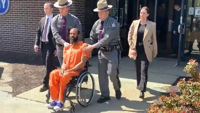 ''Moments before the press conference, Holley was wheeled out of the Troop F barracks in a wheelchair, flanked by two troopers. Peppered with questions from the media, Holley was defiant.