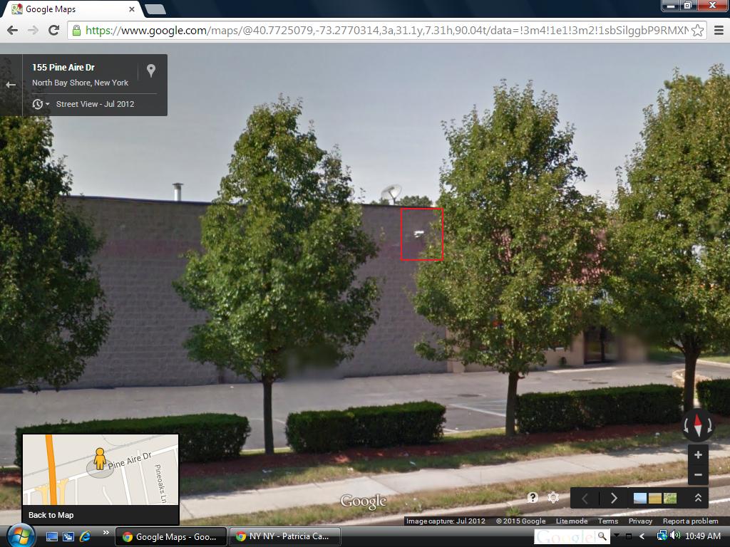 I have 13 pictures I took from street view and also took a pic of the satellite view and added numbers to correspond the pictures with the spots on the map. Most of the cameras and potential cameras were found on Pine Aire Drive between the Sagtikos Parkway and just west of her home. If she did drive that route home or if she was home and the car left from home west, perhaps one of these cameras picked up an image. There are a couple of pics that are east of her location on Pine Aire too.