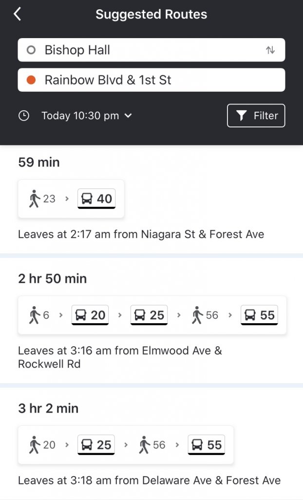 Could she have taken #20 from college to downtown and then #40 to Niagara Falls (as her friend suggested)?
