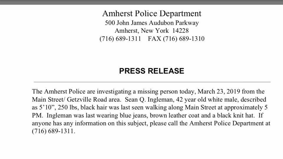 Amherst Police seek help finding missing 42-year-old man
