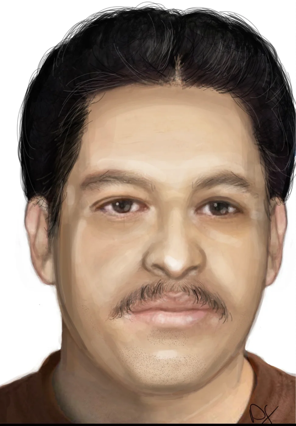 Body of Melville John Doe was discovered bloodied & handcuffed on 8/8/1990 near Chateau Drive in Melville. He’d been shot multiple times. Police believe he was Hispanic male. Forensic artist created image of what he might look like. DA offers $2000 reward.