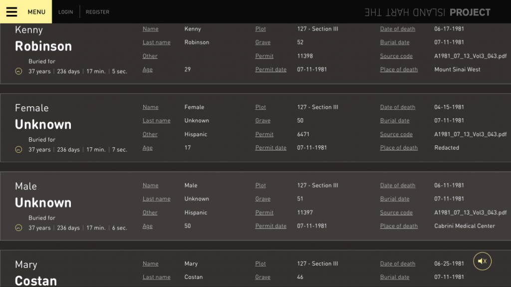 Hart Island Project, a charity that helps families around the world search for relatives who went missing in New York, and who may be buried in the potter’s field.''