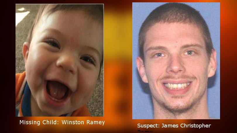 The child's name is Winston Ramey and the individual is missing. The child is a white male, is 10 months old and has brown hair and brown eyes. He weighs 32 pounds.
