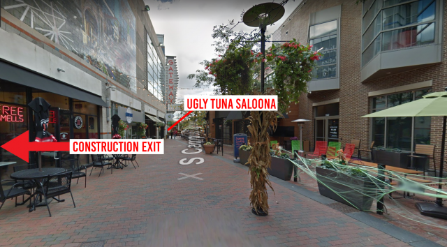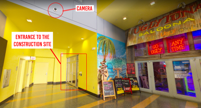 Do we know where the construction site entrance was with respect to the top of the escalator? If not, then we don't know whether the cops would have had visual contact with Brian if Brian slipped into the construction site.