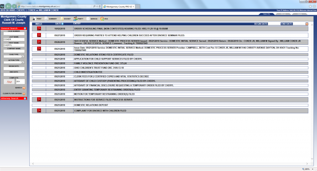 A protection order would have it's own separate docket from the divorce in Ohio.