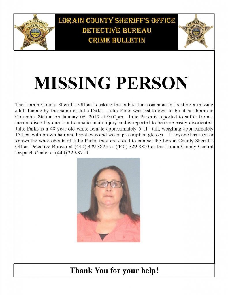 Julie Parks was last seen at her home in Columbia Station on Jan. 6 at about 9 p.m.