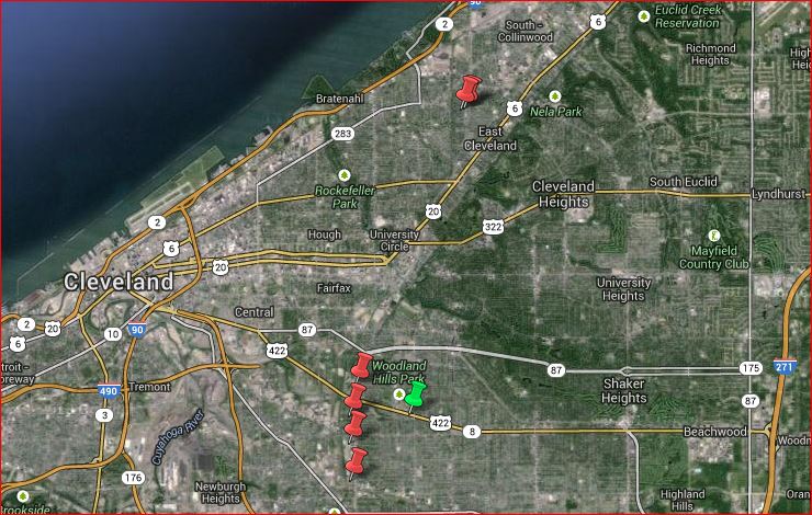I don't know if this is going to be related but a second body has reportedly been found in the last two days at a residence at the corner of Shaw and Hayden Ave. This is several miles east of the East 93rd area that the other bodies were found. Suspect is in custody.