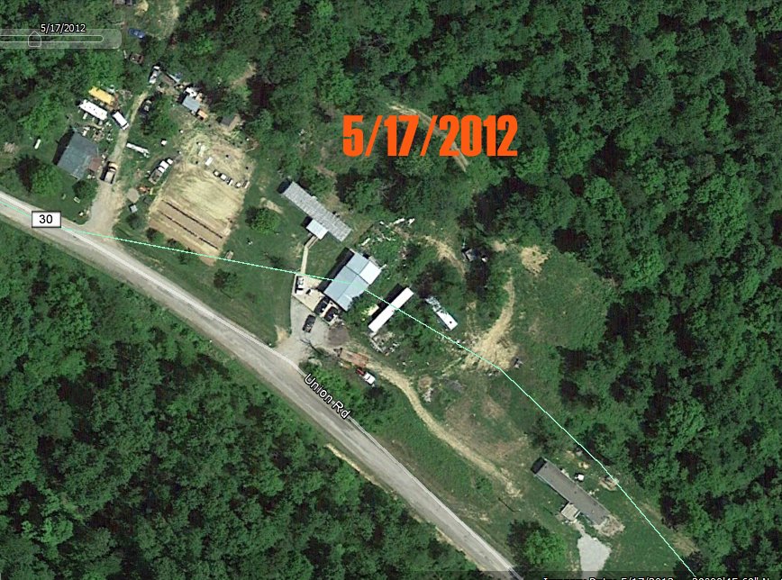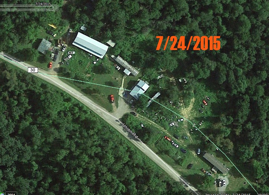 One, the cars at 4077 UHR have been a rather recent addition. In looking at Google Earth using the timeline, I found that in May of 2012, while there were some junk cars sitting around, nothing near the extent of what is there now (with the most recent sat image being taken in 2015.). See the two attached images.