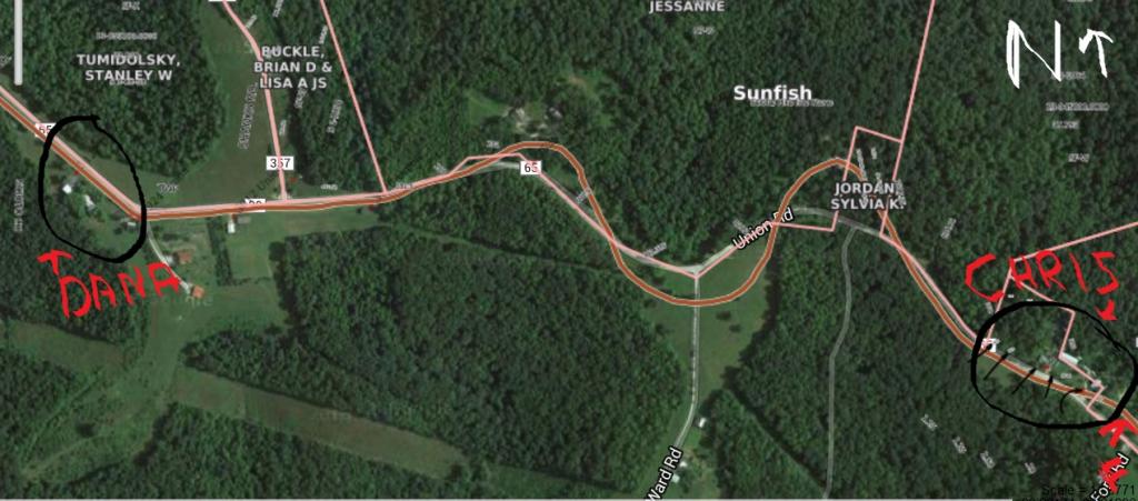 The distance between Dana's house and Chris Sr. house