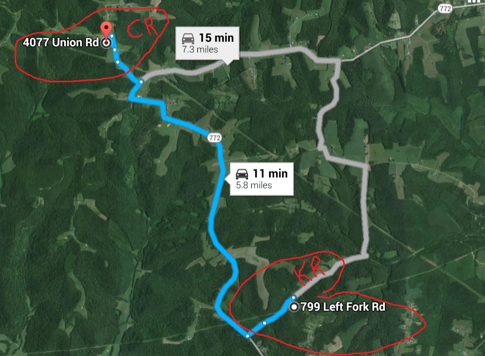 distance between Union Hill Road and Left Fork Road