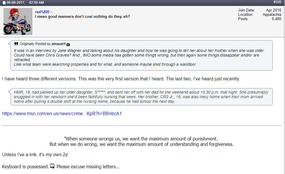 And do we need to include RRL incident the kids going after CRjr and showing up around his home. I understand what your saying I think. We need to simplify.