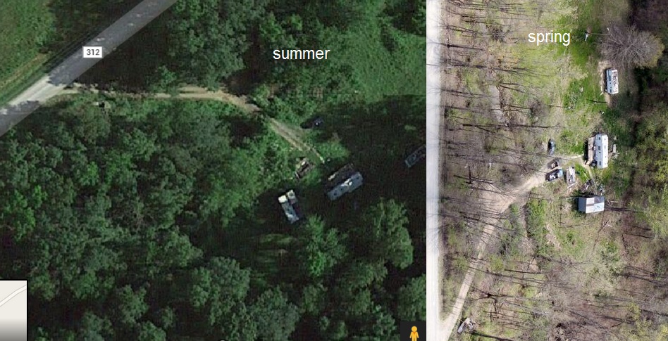 The google map of 799 Left Fork shows Kenneths as the one lonesomepaws put it, but they're usually one place off. I've seen that even when they show townhouses, they're one house off. So I looked down the road a little further and found Kenneth's, it matches the media photo of his place. Google usually takes photos in the summer, so the map shows it when it's all green and trees are full. The crime scene photo is when it's not grown up with leaves on the trees, but you can see the campers and building is the same. Here's the google maps of it.