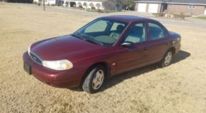The vehicle involved is a red 1998 Ford Contour with OH plate number HXN4100.