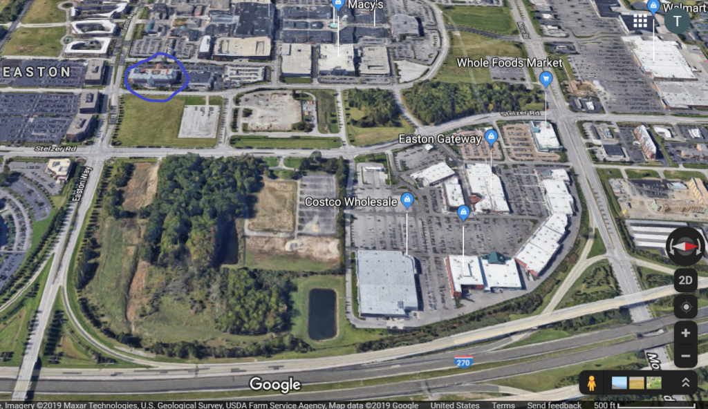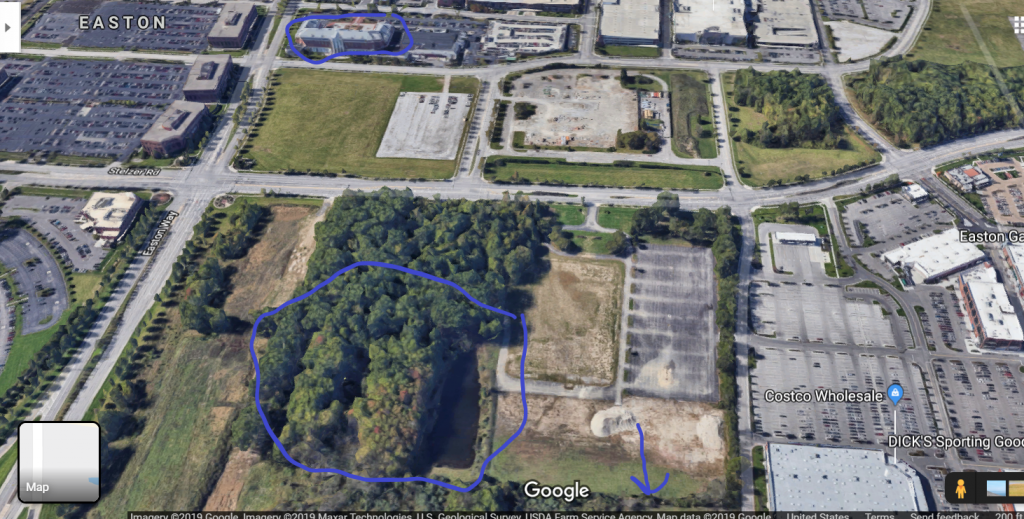 I've circled the hotel again. The arrow indicates the pond by Costo that is just out of view. The bigger circle is another body of water and IMO an area that Tyler might have been at when he placed his last call and said I am in the woods and I can see the hotel. I'd say the the trees would be just about bare at the time of the year he went missing so he would be able to see the hotel to a degree depending on where he was standing. Imagine it being pitch dark and thinking you are walking through the woods and falling into freezing cold water. I do believe there was some kind of construction going on at the time but not 100% sure.