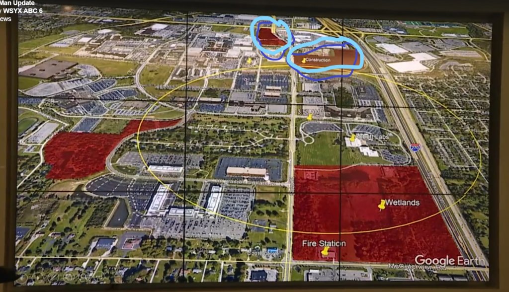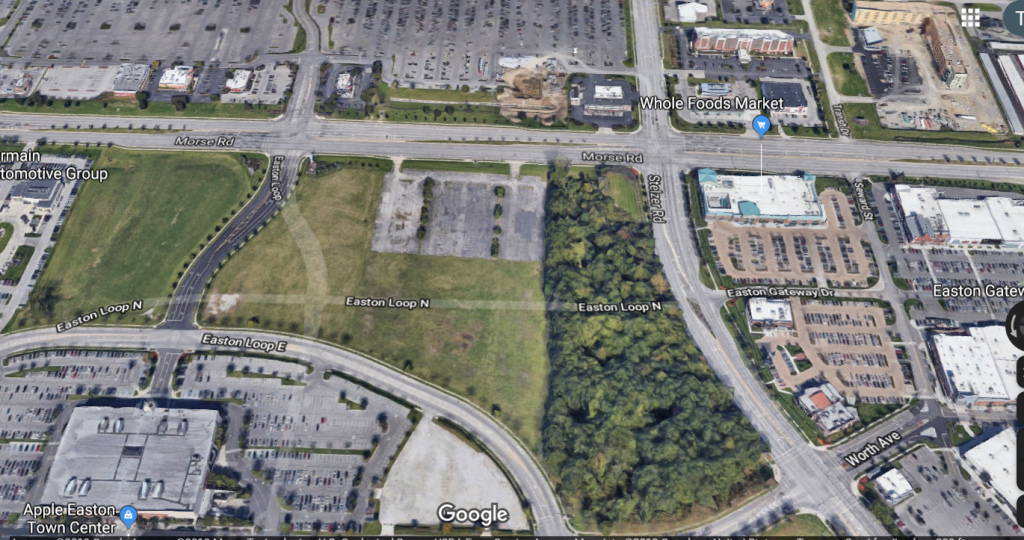 Here is the map from the press conference. The area I circled that is marked construction is the area I posted pics of a couple of posts ago. Right above that area is Costco. The smaller area up top is directly across from Morse Rd. Across the street from Morse higher up is a gas station and to the right is the Hampton Inn. I posted on another forum a while back that if Tyler came out of that wooded area from Stelzer onto Easton Loop E he could have mistaken Nordstom for the Hilton possibly because of the steeple they both have. In the dark he may have thought he was looking at the Hilton but was looking at Nordstrom. The other two pics are of the Hilton and Nordstrom. From where he could have been standing right out of that wooded area he would have had a view of both places at almost the same vantage point. To me they look kind of similar.