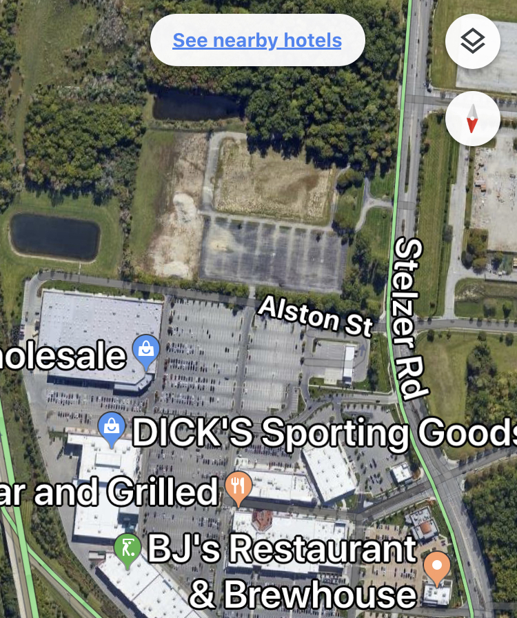 I think Tyler went to the Hampton by mistake because of how he asked for directions. I think he finally figured out where he was. If you look at an aerial view of that area you can get an idea of what I’m talking about. So Tyler crosses over Morse Rd. and was walking down Stelzer. The Hilton comes into view around the corner of Stelzer and Alston. If Tyler got his bearings by then and had an idea where he was and he knew that he was looking at the Hilton I’d also guess it would be about 10 minutes to get there. This area just happens to be near the Costco and the body of water that was searched. From here it’s just a guess. Did he run into the wrong people possibly on their way home after a night of drinking? Maybe a car was at the light and Tyler was crossing the road and hit him or maybe someone yelled at Tyler and he yelled back and it got ugly from there. All speculation but stuff like this happens especially when alcohol is involved. The aerial view is of Stelzer and Alston. You can see Costco to the left. The other pic is the view from the corner of Stelzer and Alston. At some point Tyler would have had to cross the street. I personally would have crossed at that corner and tried to walk back in a straight line as much as would be possible. There was a lot of construction going on at the time so I’m not sure if trees that he would have had to walk through.