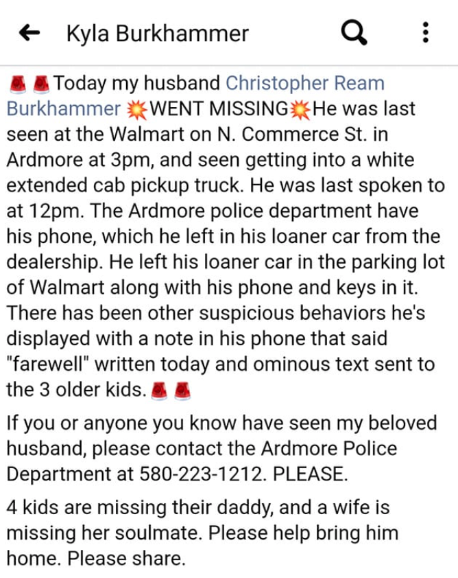 •last seen at around 10:35 a.m. on July 29 in the Ardmore WalMart parking lot