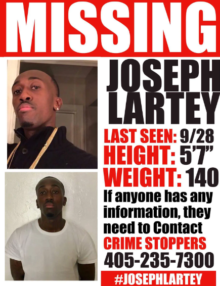 A flyer was created in an attempt to search for Joseph Lartey. {KFOR, OCPD}