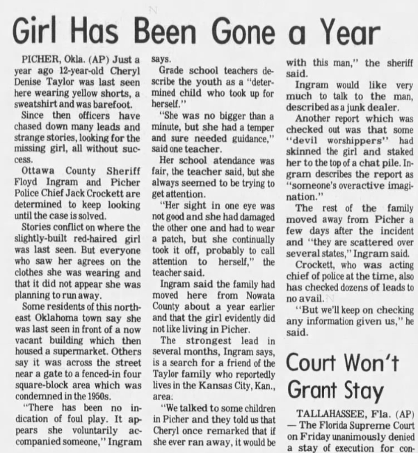 OK - OK - Sheryl/Cheryl Denise Taylor, 12, Picher, July 1978 | Page 2 |  Websleuths