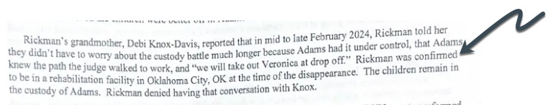 Are you saying TA was going to hurt the judge on his walk to work? If Rickman is not charged, I still hope he doesn’t regain custody of his children. It seems there are several people who could have alerted Veronica and LE about these horrible plans. This case sickens me. TA did not want the children for their best interest, she wanted them to win in her crazy mind. I hope no plea deals are offered and all get the death penalty. The man who wasn’t arrested, but involved, is so interesting to me. Regardless of his knowledge of the murder plans, and possibly any knowledge of other damning evidence against the others, I wish he had tipped Veronica off. Hopefully we learn more about him as the case unfolds.
