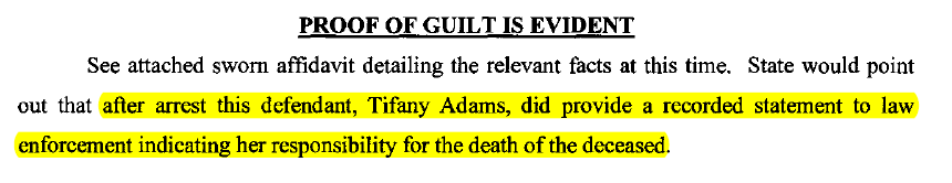 “An examination of the vehicle and area surrounding the vehicle found evidence of a severe injury,” the affidavit stated.