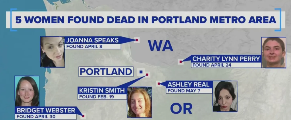 OR - 6 women found dead near Portland, most in secluded, wooded area, Feb 19 - May 8, 2023 *POI of 4*