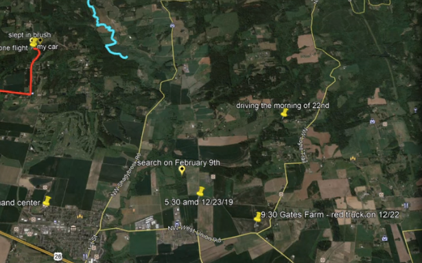 Gray then brings up a possible sighting north of here on Linnea Dr noted below as "driving the morning of the 22nd"