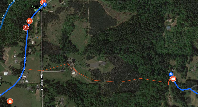 As there is no hiking spot, I can only say that where B was found in the truck is about one property to the east of where they were staying/partying and is within the 4-5 mile radius they were walking around in. B's dad lives on the west side of Hillsboro about 5km from Allyson who lives on the East side. Her home is in proximity to the grocery store parking lot where Truck A was stolen.