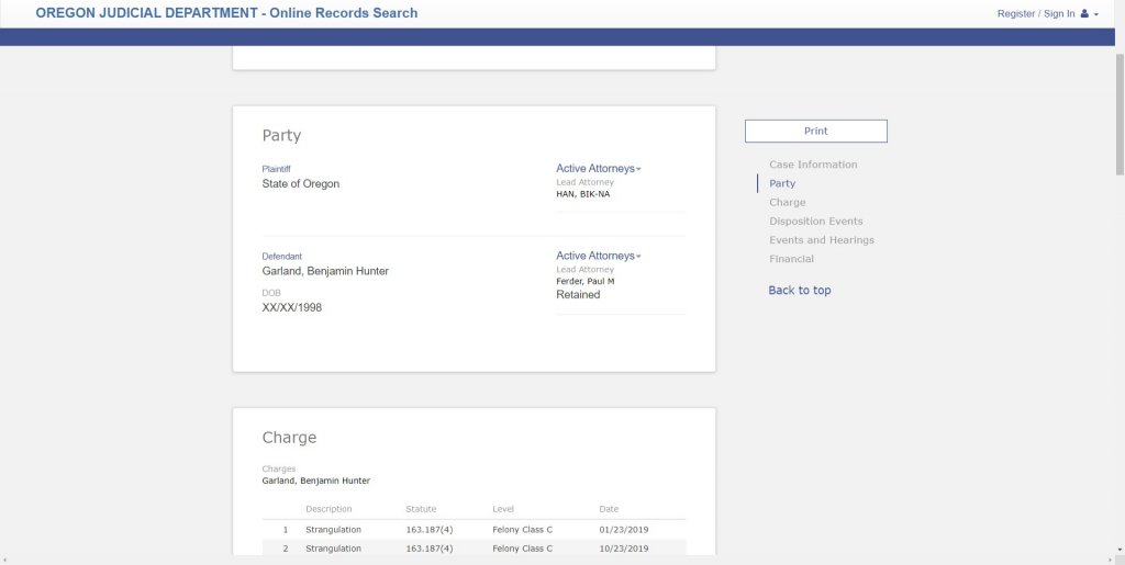 what do you all make of this? 2 counts of strangulation 01/23/2019 and 10/23/2019.