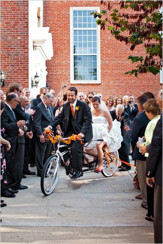 Hanne and Brian Duncan of Philadelphia, fans of bicycling, met at a race, and their second date was a 60-mile ride. So it seemed fitting for them to leave their wedding last August at Village Presbyterian Church in Prairie Village, Kan., on a tandem. Guests rang bicycle bells as they rode off.