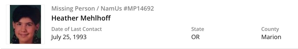 Misty Dawn Thompson could be a possible match -- she went missing from Woodland, WA (less than a 2-hour drive from Clackamas Co.) in August 1993 when she was 14.