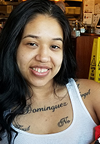 • Distinguishing Characteristics: Hispanic female. Black hair, brown eyes. Martinez was wearing false eyelashes at the time of her disappearance, and she may wear artificial fingernails. Her ears are pierced. She has the following tattoos: the name "Dominguez" on her upper chest, the words "Trust No One" below it across her breasts, the word "Karisma" on her upper right arm at the shoulder, a princess crown on her upper left arm at shoulder, the phrase "Forgive never forget" on the top/front of her left shoulder, the name "Jesse" on the top of her right shoulder, the number "503" behind her right ear, the phrase "Walk by faith not by sight" on the outside of her right calf, the letter "C" in Old English script between her left index finger and thumb, the face of Marilyn Monroe intertwined with a skull face on her right thigh with the phrase "If you are going to be two-faced at least make one of them pretty", and the word "Trust" next to her side when her right arm is down, and the word "Faith" next to her side when her right forearm is raised. Photos of some of her tattoos are posted with this case summary.