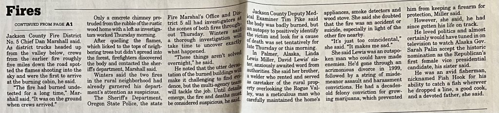 Forty-six year old Dave Lewis lived in a cabin on the summit of Dead Indian Memorial Road just on the outskirts of Ashland. Photos taken before his murder, captured a man who seemed quick to smile and his obituary noted he was, “intense and unforgettable, a rascal and a live wire.” Dave loved fishing and spending time with his sons.