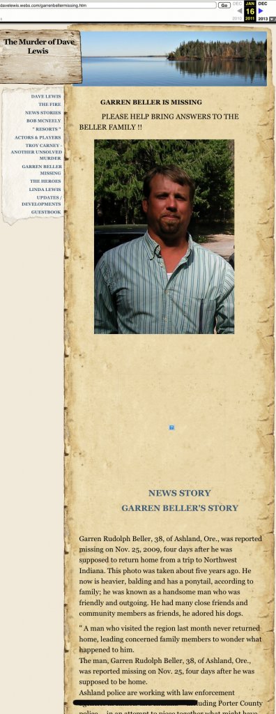 So what I'm trying to understand is... why is Beller of interest to whomever created the murderofdavelewis site? Dave died in 2008 and Beller went missing about a year later, AND the home he had been at exploded and burned. What is the owner of that website trying to infer? That they knew each other? That Beller was involved in Dave's murder? Or was it simply because he was a missing person from Ashland, even though I thought that website was just about the murder of Dave Lewis. I guess I'm just confused. lol
